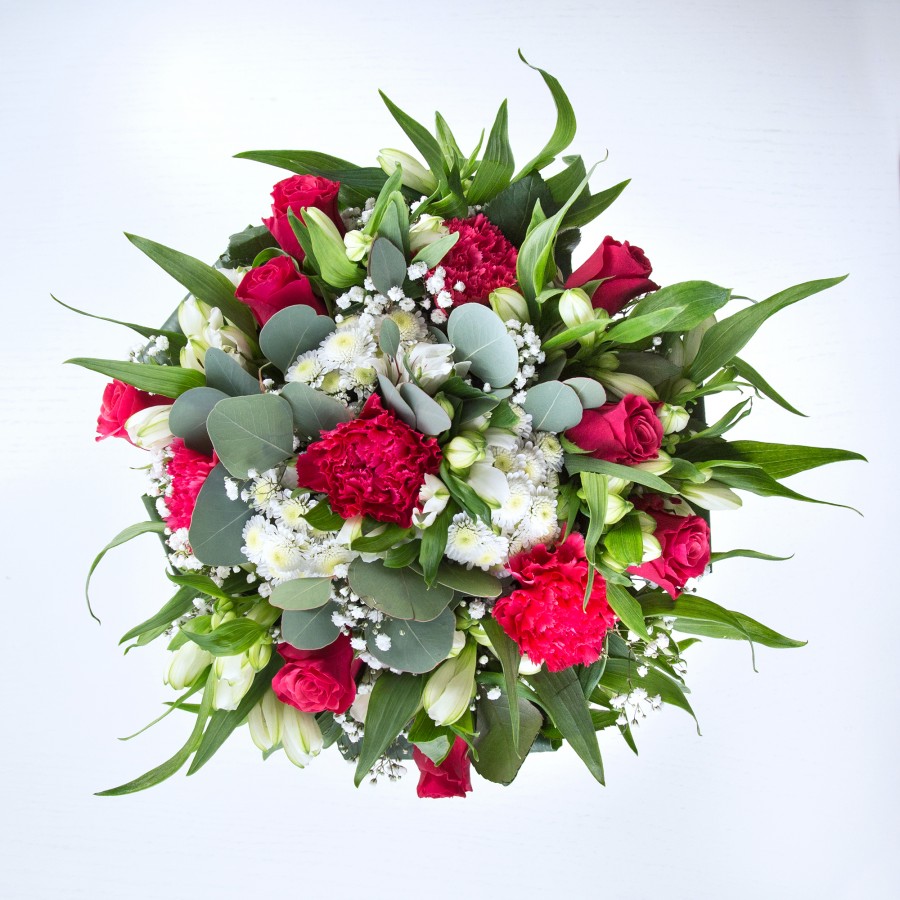 Beautifully arranged bouquet with fresh flowers. Perfect for our anniversary celebration.